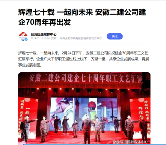 媒體聚焦丨瑤海宣傳、瑤海區融媒體中心等主流媒體報道安徽二建公司建企七十周年職工文藝匯演盛況