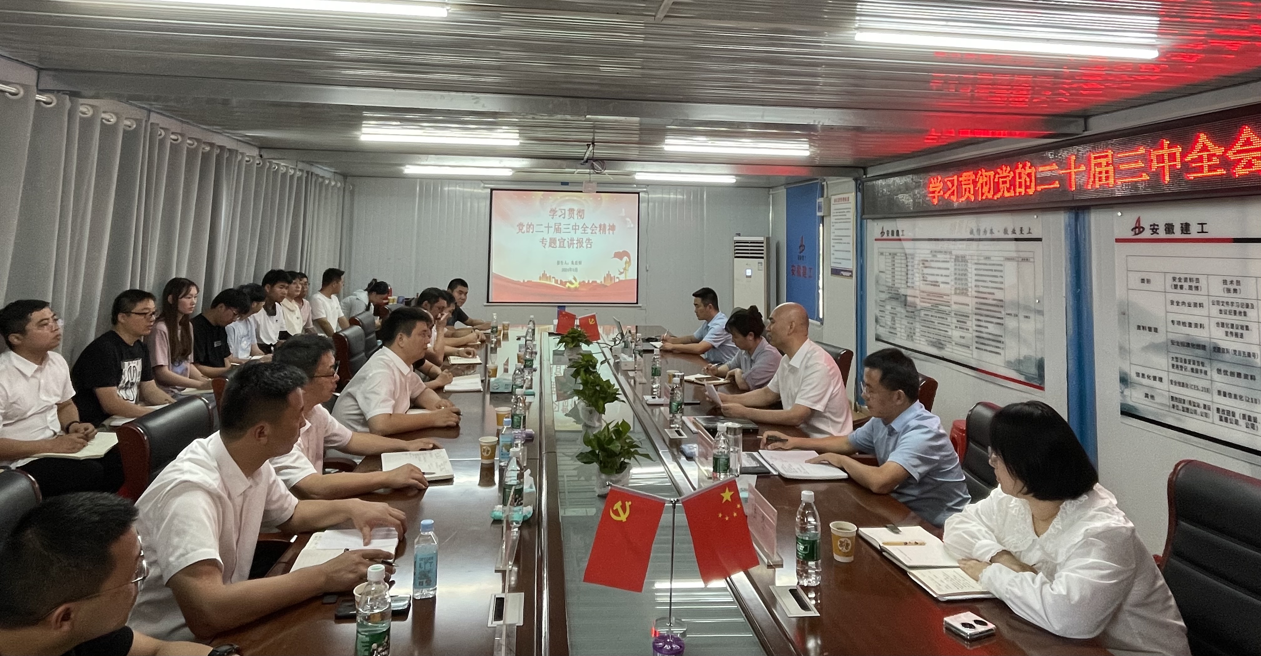 下午,朱忠明在宿徐園區城鎮一體化A、B地塊項目會議室集中宣講黨的二十屆三中全會精神,并結合公司當前實際情況,深入分析解讀公司三年發展目標和五項年度重點任務。