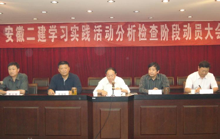 安徽二建自3月23日動員會召開以來,在集團公司學習實踐活動第一指導督查組的指導下,圓滿完成了學習實踐活動第一階段各項工作任務,經集團公司學習實踐活動領導小組辦公室及第一指導督查組同意,從5月19日轉入第二階段(分析檢查)。會上,朱治淮書記首先對公司學習實踐活動學習調研階段工作作了簡要回顧:一是領導高度重視,及時成立組織機構;二是精心謀劃活動載體,營造良好的輿論氛圍;三是妥善處理工學矛盾,認真組織學習;四是突出實踐特色,深入開展調研活動;五是緊緊圍繞“六問”開展解放思想大討論;六是精心統籌安排,努力做到“兩不誤、兩促進”。朱書記著重強調第二階段要抓好四項工作:一是堅持把理論學習貫穿始終;二是切實找準存在的突出問題;三是認真開好專題民主生活會;四是形成領導班子的分析檢查報告。