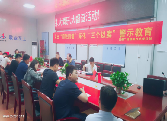 5月28日,公司財務總監(jiān)項新元一行深入四分公司合肥麗豐璞羽西苑項目部開展以“三個以案”警示教育大宣講、大調研、大督查活動。項新元一行首先聽取了項目部關于開展“三個以案”的工作匯報。隨后,調研組帶領大家學習了安徽建工控股黨委關于深化“三個以案”警示教育大宣講和關于“工程建設領域廉潔風險防控清單”內容,同時進行了問卷調查,對項目關鍵崗位人員進行了談話。最后,項新元重申了建工控股紀委書記宋志華5月25日在該項目給公司中層干部提出的幾點要求,并對項目部提出了三點建議。