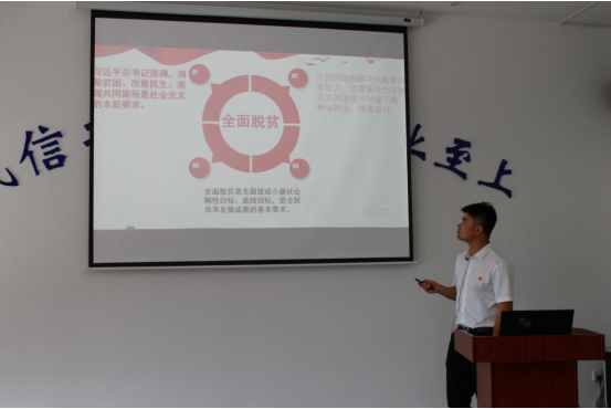 微宣講競賽結(jié)束后,緊接著開展了“黨課開講啦”活動,所屬各支部書記、優(yōu)秀黨員代表結(jié)合自己的工作實際,講述對決勝全面建成小康社會、決戰(zhàn)脫貧攻堅、打贏疫情防控阻擊戰(zhàn)等一線先進事跡的所見所聞所悟,引起了大家的深思與共鳴,為全面打好精準(zhǔn)脫貧攻堅戰(zhàn)提供堅強組織保證。