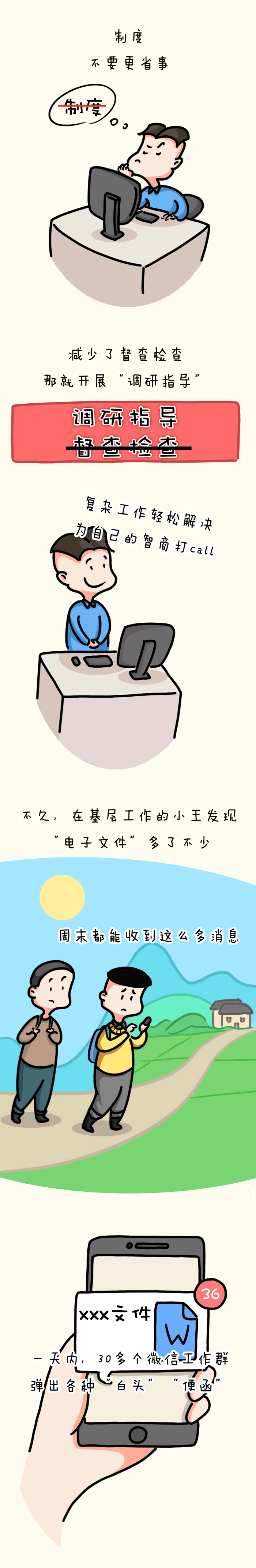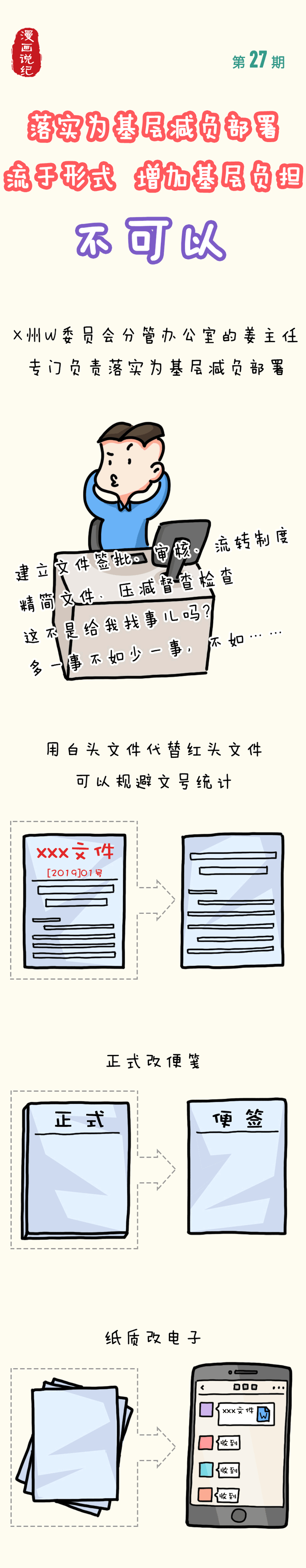 漫畫說紀(jì)丨落實(shí)為基層減負(fù)部署流于形式 增加基層負(fù)擔(dān) 不可以