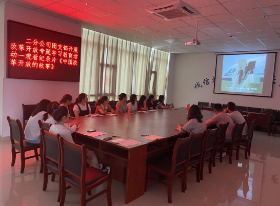 會上,分公司團支部組織開展改革開放專題學習教育活動,觀看紀錄片《中國改革開放的故事》。該片是由英國廣播公司制片人邁克爾·伍德撰稿并主持,主要圍繞“人心所向”、“走向世界”、“中國創造”、“綠色中國夢”以及“未來之路”五個方面所展開,從普通中國人的視角,以相當接地氣的方式講述了中國的歷史和傳承,透過鮮活的鏡頭語言,客觀展示出中國改革開放的脈絡和成就。