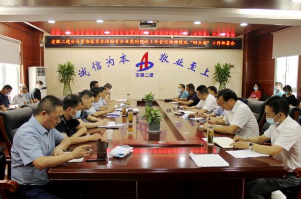 9月3日下午,安徽二建公司召開貫徹落實(shí)全國(guó)國(guó)有企業(yè)黨的建設(shè)工作會(huì)議精神情況“回頭看”工作部署會(huì),學(xué)習(xí)傳達(dá)了建工控股黨委貫徹落實(shí)全國(guó)國(guó)有企業(yè)黨的建設(shè)工作會(huì)議精神情況“回頭看”工作部署會(huì)暨三季度黨群工作會(huì)議精神,并對(duì)公司開展“回頭看”工作進(jìn)行部署安排。公司黨委副書記、總經(jīng)理李建成作動(dòng)員講話,公司黨委副書記、工會(huì)主席王軍主持會(huì)議。公司領(lǐng)導(dǎo)班子成員、機(jī)關(guān)部門主要負(fù)責(zé)人、所屬各單位黨政主要領(lǐng)導(dǎo)參會(huì)。