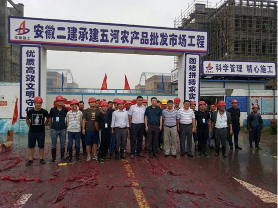8月29日上午,條幅高懸,鞭炮齊鳴,在業主、監理單位及安徽二建公司領導的共同見證下,由我公司承建的五河農產品批發市場一期項目主體結構順利封頂。