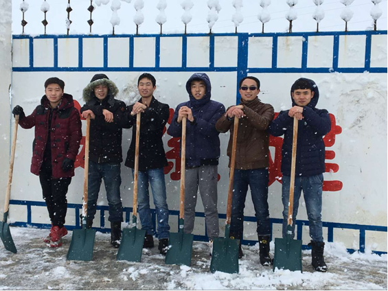 寒風(fēng)陣陣,雪花飄飄,厚厚的積雪讓人步履艱難,但這并沒(méi)有阻擋隊(duì)伍的鏟雪進(jìn)度,每一鍬、每一鏟,都凝結(jié)大家的付出和努力。經(jīng)過(guò)奮戰(zhàn),道路,院內(nèi)積雪都被清掃干凈,確保了道路暢通和人員安全,極大的方便了項(xiàng)目全體人員的出行,項(xiàng)目建設(shè)進(jìn)度得以正常推進(jìn)。
