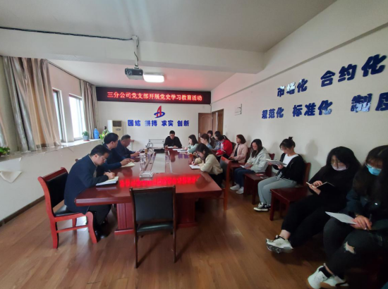 三分公司黨支部開展黨史學習教育活動,分公司機關全體人員參加,活動由支部書記陳習武主持。首先,陳習武帶領大家學習了二建黨發【2021】13號文《安徽二建公司黨委關于開展黨史學習教育的工作方案》,并就分公司黨支部的黨史學習教育活動做了詳細安排部署,要求全體黨員干部把思想和行動統一到集團、公司黨委的決策部署上來,高標準、高質量完成黨史學習教育各項任務,努力做到學史明理、學史增信、學史崇德、學史力行,以優異成績迎接建黨100周年。隨后,陳習武帶領大家上了一堂生動的黨史課。“從上海石庫門到嘉興南湖,一艘小小紅船承載著人民的重托、民族的希望,越過急流險灘,穿過驚濤駭浪,成為領航中國行穩致遠的巍巍巨輪。”。通過視頻和講解相結合,為大家敘述了從中國共產黨成立到建立新中國,28年間,黨召開了一次次重要會議。這些會議作出的決策,指引了中國革命的方向,推動了歷史進程,具有里程碑意義。大家紛紛表示,將從黨史中汲取智慧和力量,堅定信仰信念,進一步提高黨性修養,不忘初心,以實際行動發揮好黨員干部的模范帶頭作用,積極投入到干事創業中去,為分公司的發展添磚加瓦。