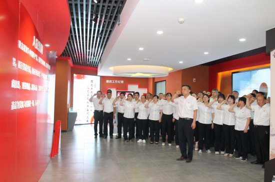 展廳內(nèi),通過講解員講解、觀看圖片展板和影像、互動體驗(yàn)等方式,大家依次參觀了鑒史問廉、廉政故事、貪腐之害、時光隧道、廉潔豐碑、廉政成果、廉政文章、廉政寄語八大主展區(qū)。一個個詳實(shí)鮮活的腐敗典型案例,讓大家在視覺、聽覺上深切感受“知敬畏、存戒懼、守底線”的重要意義,讓黨員干部們的心靈經(jīng)受了一次洗禮,真正將參觀學(xué)習(xí)的成果轉(zhuǎn)化為抓好黨史學(xué)習(xí)教育和黨風(fēng)廉政建設(shè)的強(qiáng)大動力。活動期間,公司黨委副書記、紀(jì)委書記仇多維帶領(lǐng)在場全體黨員同志重溫入黨誓詞。