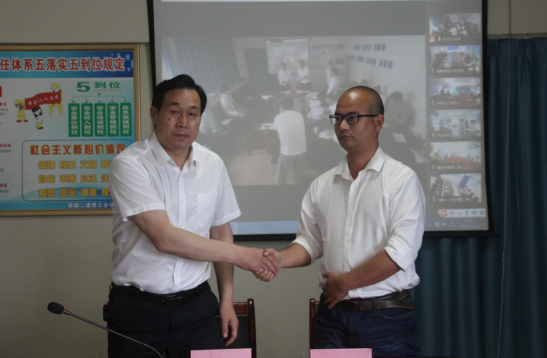 會上,分公司領(lǐng)導(dǎo)與項目經(jīng)理簽訂了《目標責任狀》,為各責任主體完成全年指標下達了“任務(wù)書”,確立了考核依據(jù)。